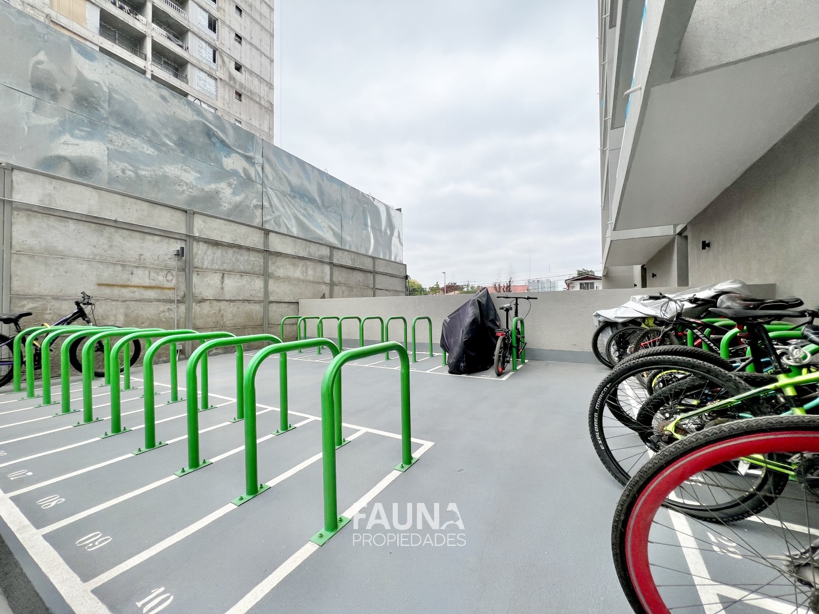 El edificio ofrece áreas comunes como piscina, quinchos, salón gourmet, bicicleteros y gimnasio.