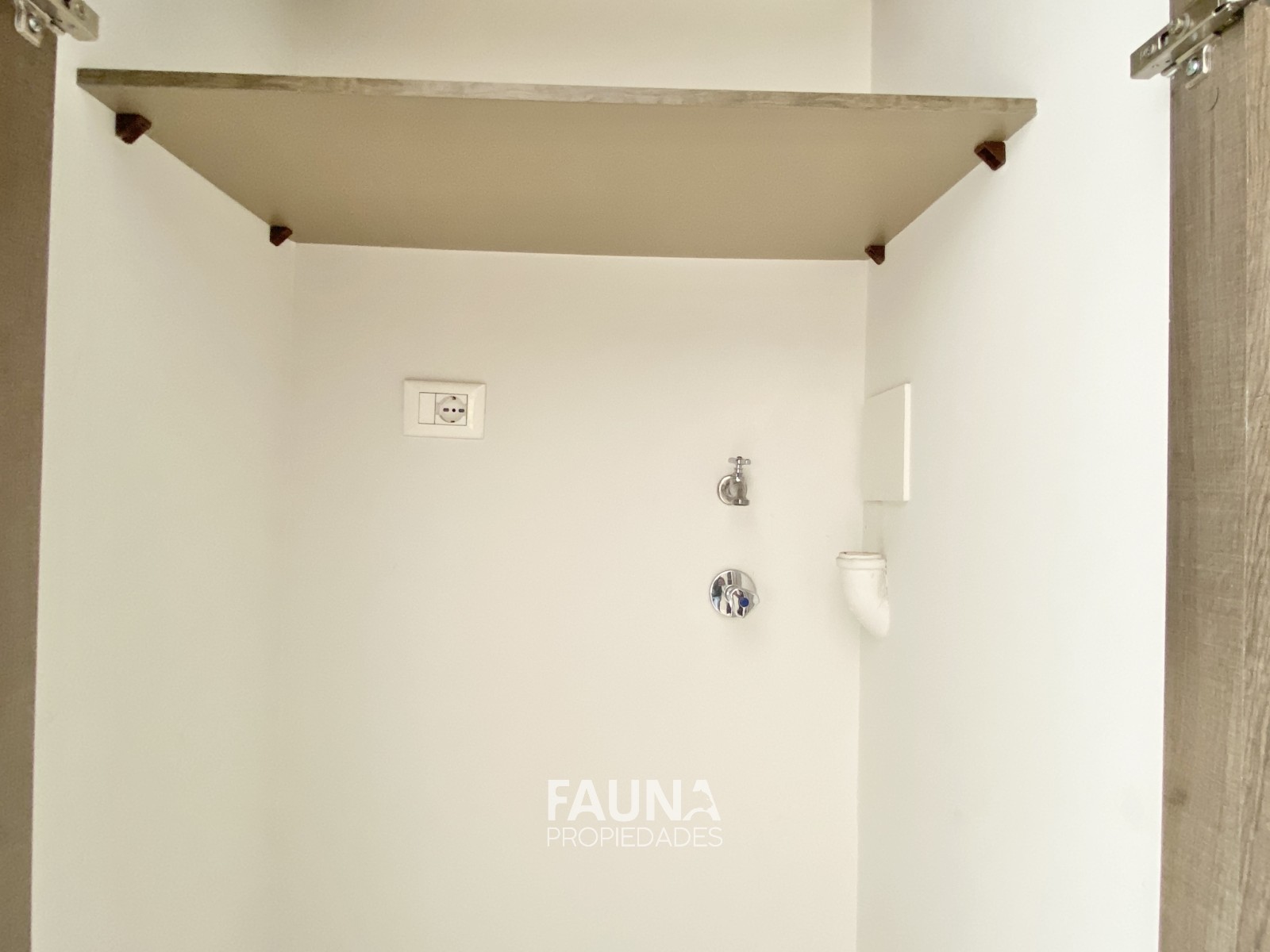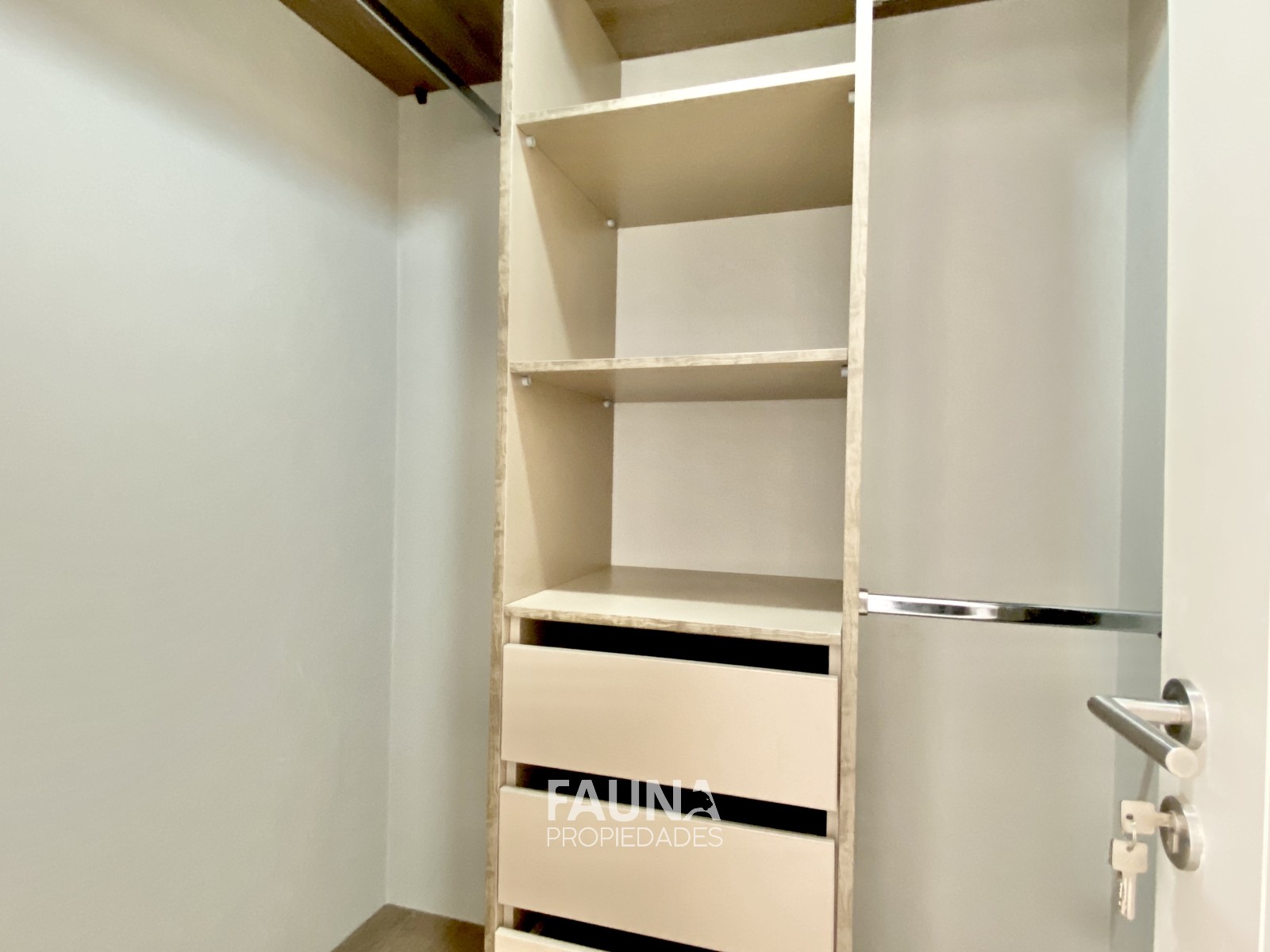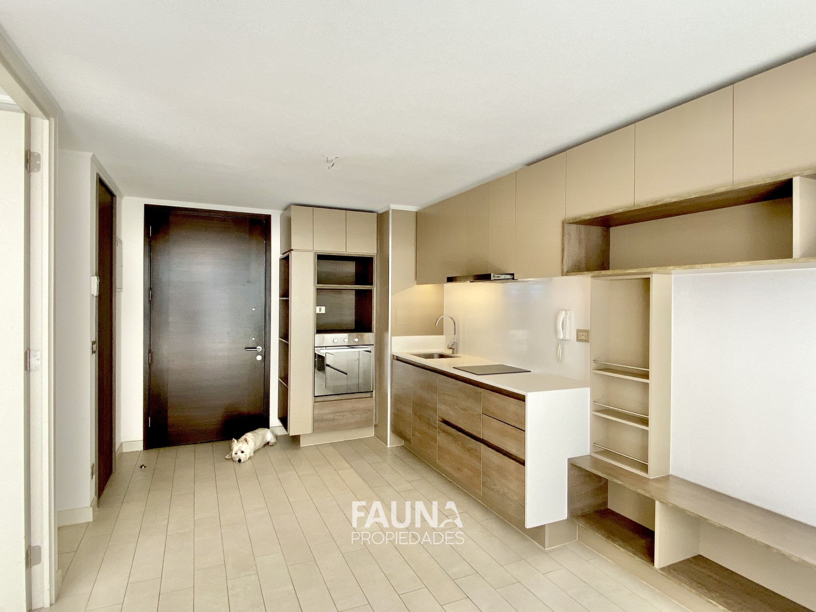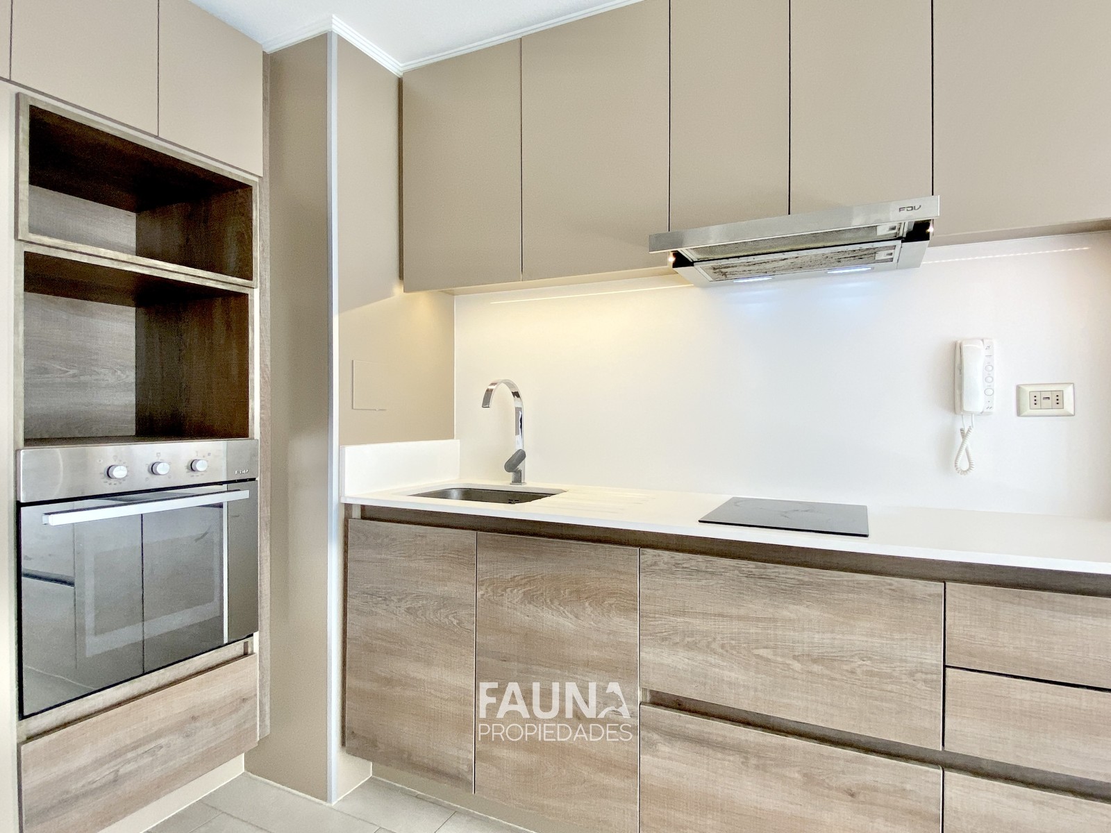 La cocina abierta posee superficies de cuarzo y es full eléctrica con encimera vitrocerámica, además de conexión para lavadora. El living cuenta con un rack para TV, equipo de musica o libros. El dormitorio tiene un walking closet y el baño es con shower door. Todo el departamento tiene termopaneles y roller en las ventanas y el piso es de porcelanato.