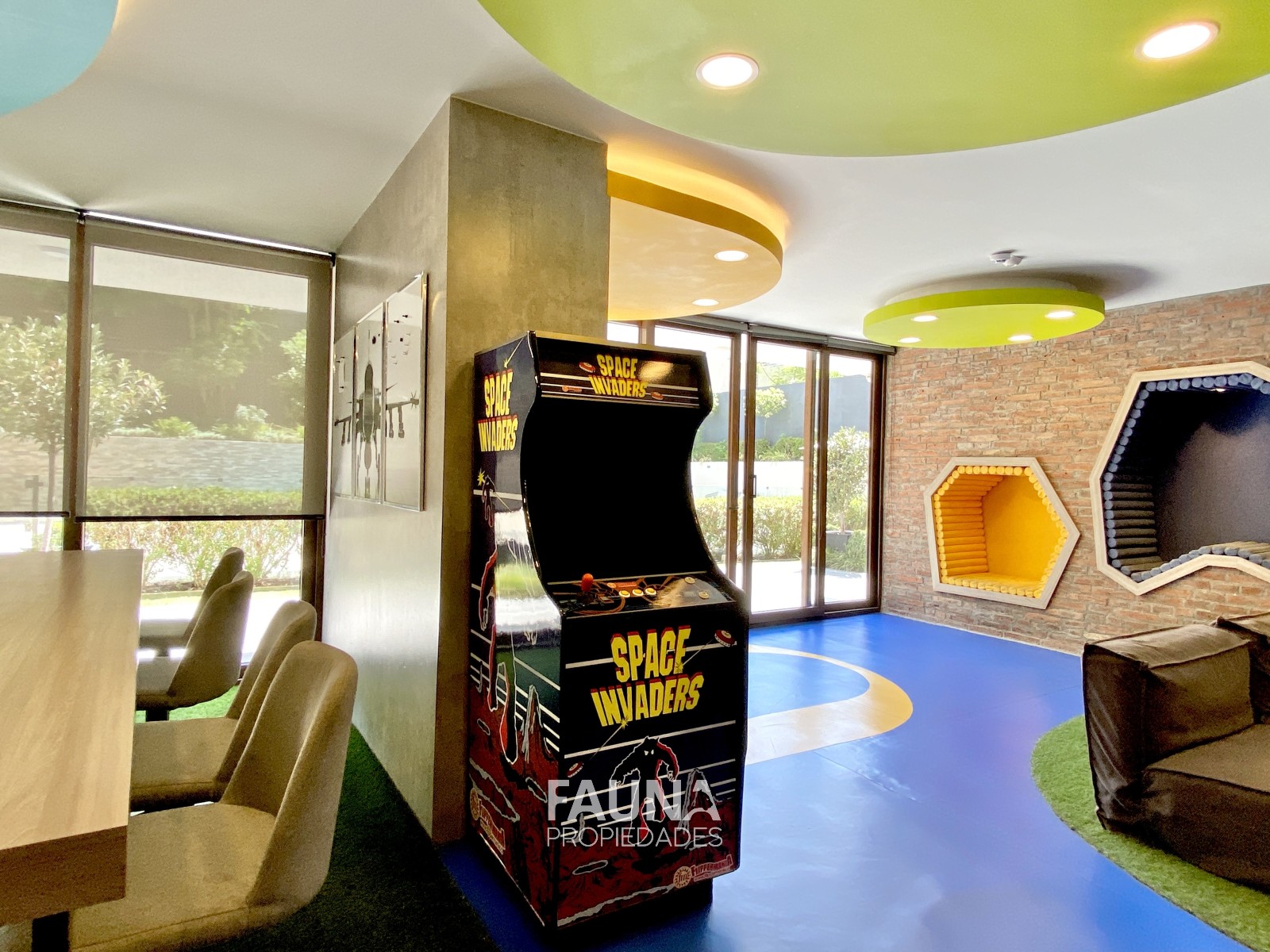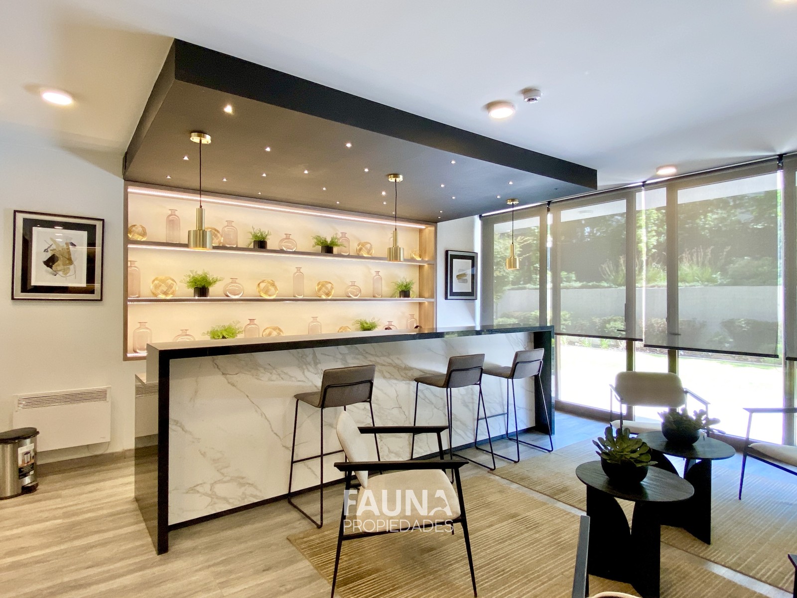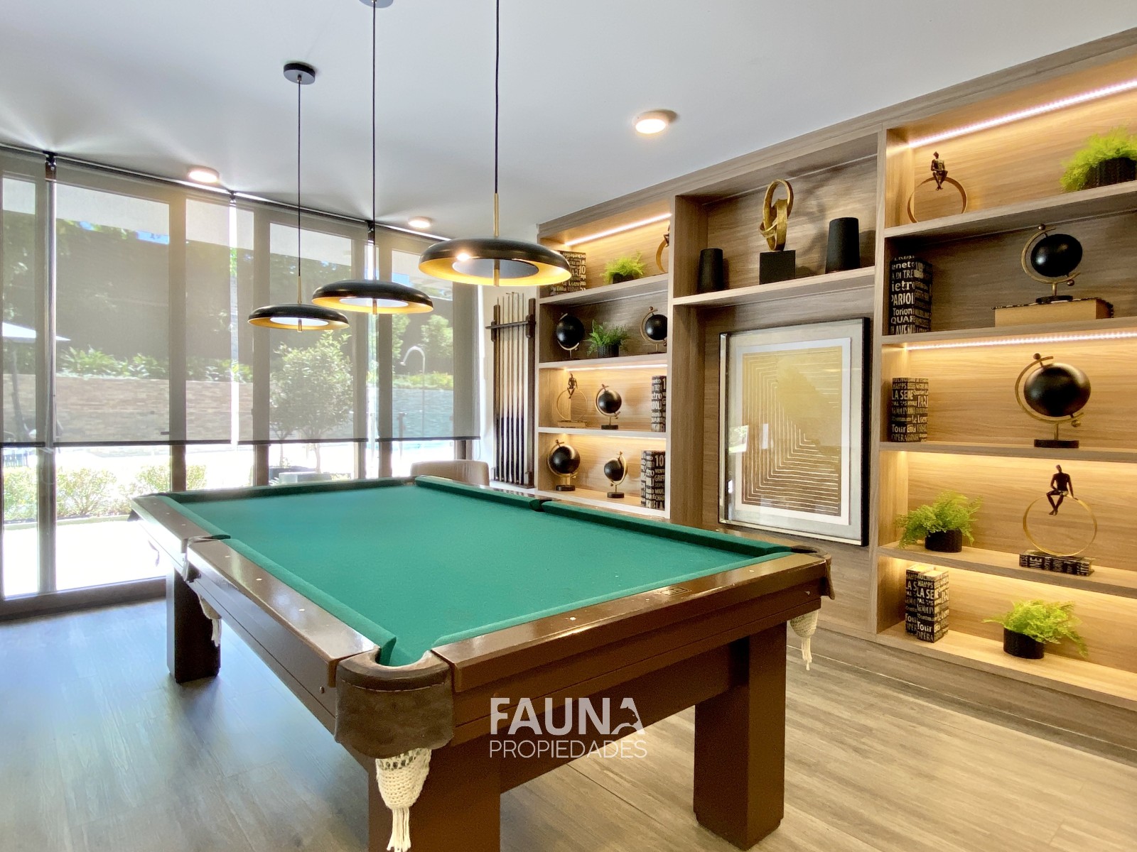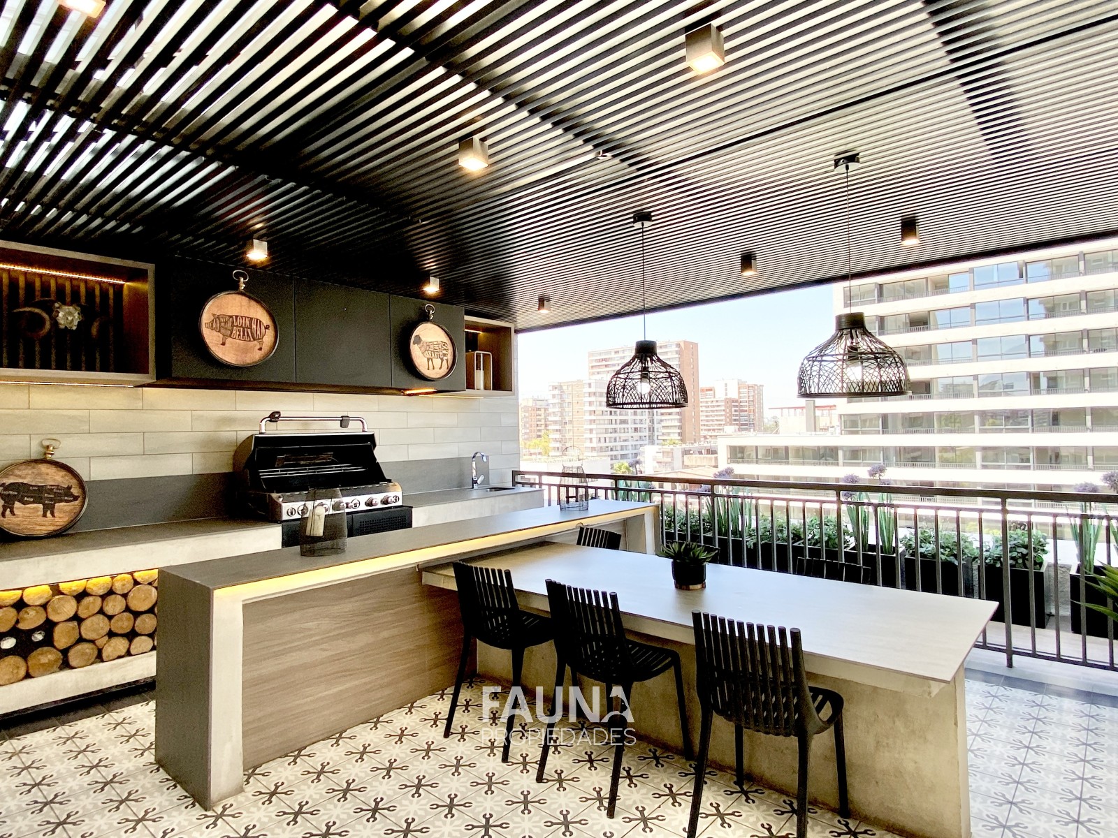 El edificio ofrece áreas comunes como quinchos con vista, piscina, gimnasio, sala de juegos, mesa de pool, sala de cine y salón multiuso.