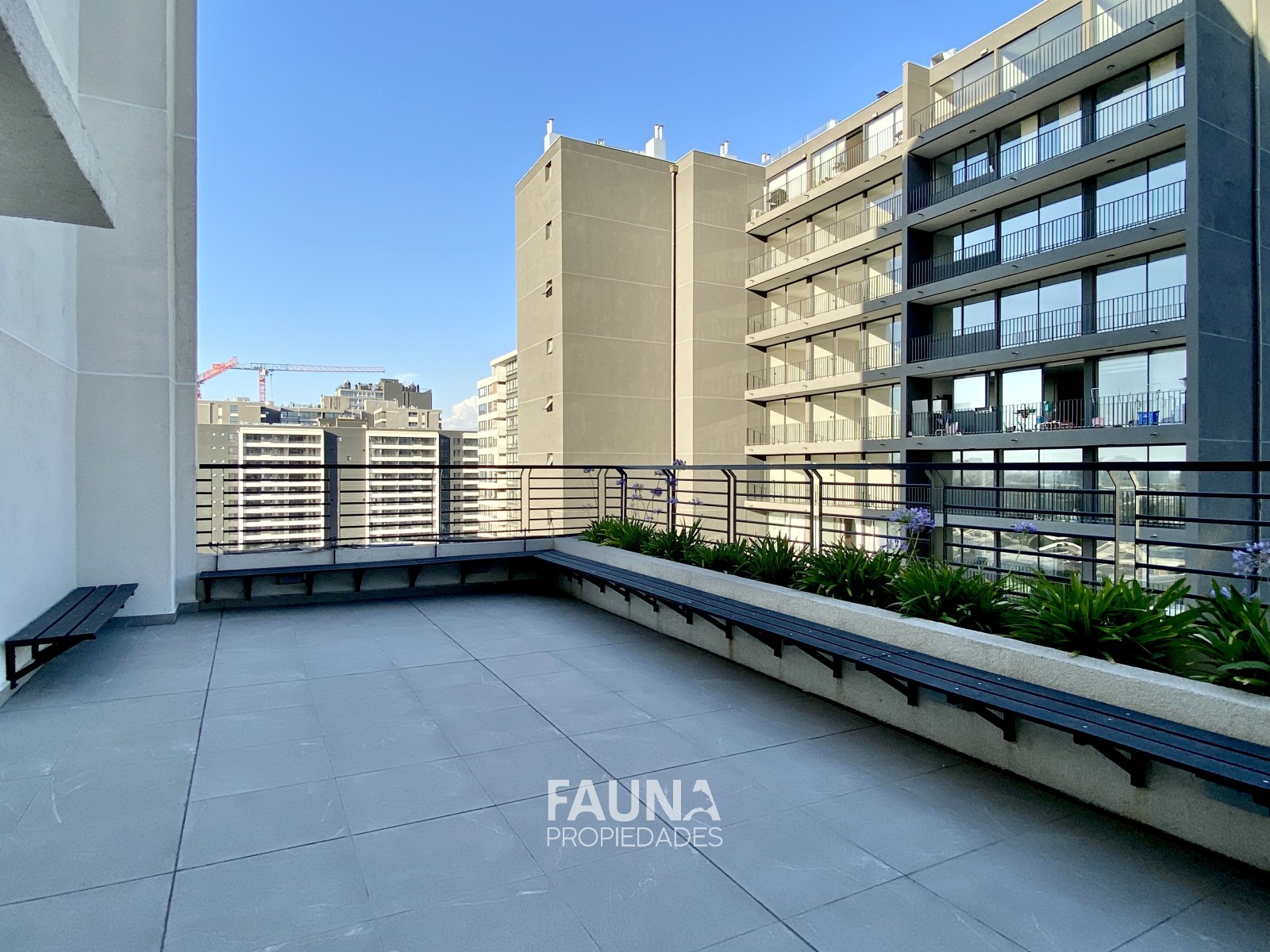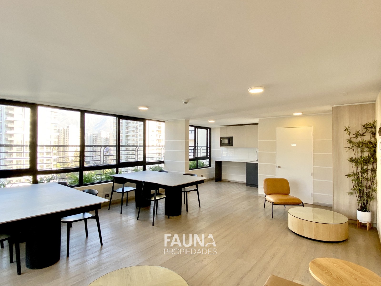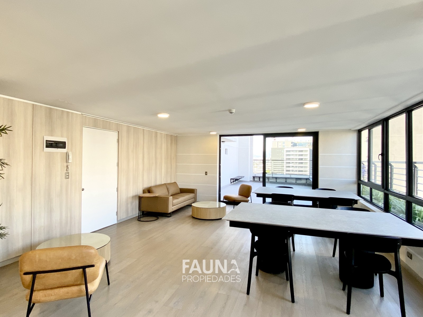 El edificio ofrece gimnasio, cowork, salón multiuso, bicicleteros, piscina, terraza con salón panorámico en piso 12 y quinchos, además existe una salida peatonal que dirige a una plaza de bolsillo privada a vecinos que colindan con ella, con juegos infantiles y bastante vegetación.