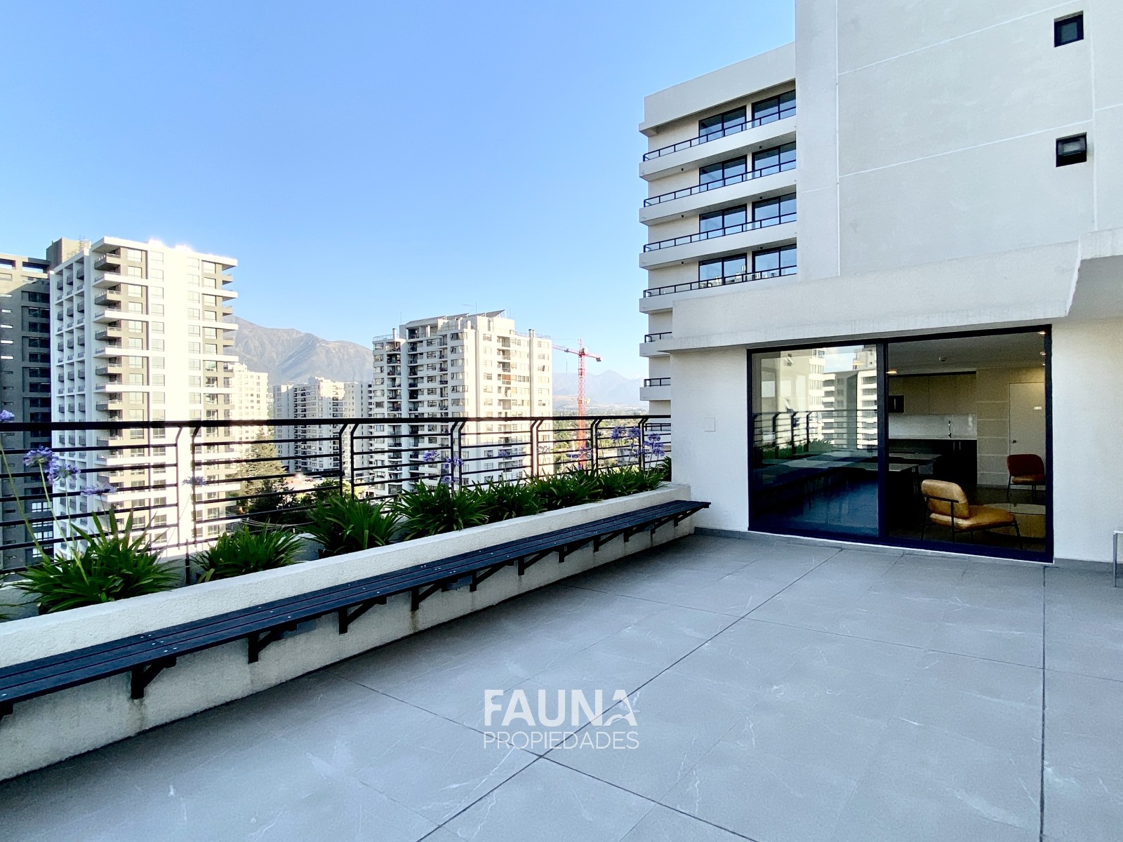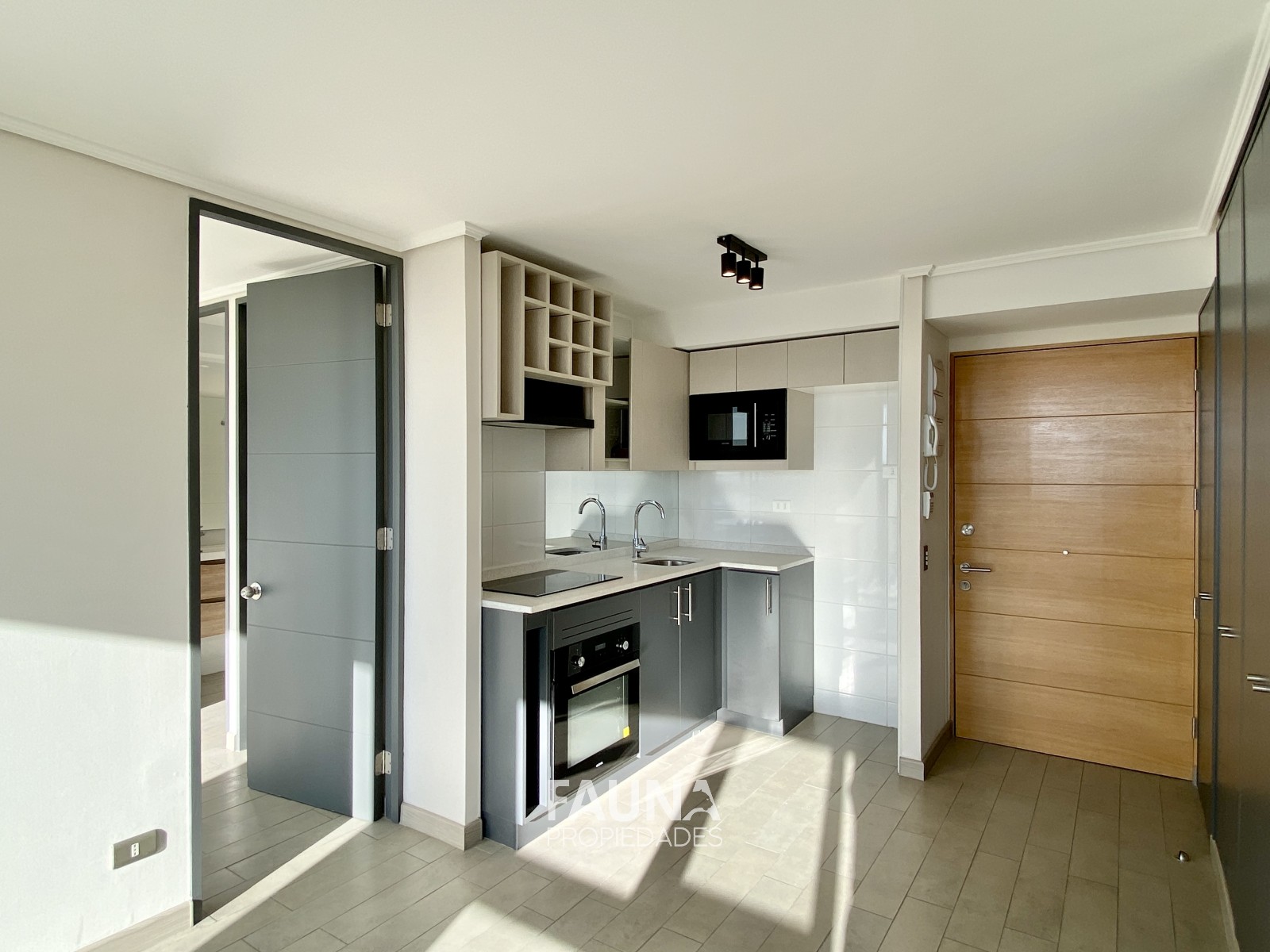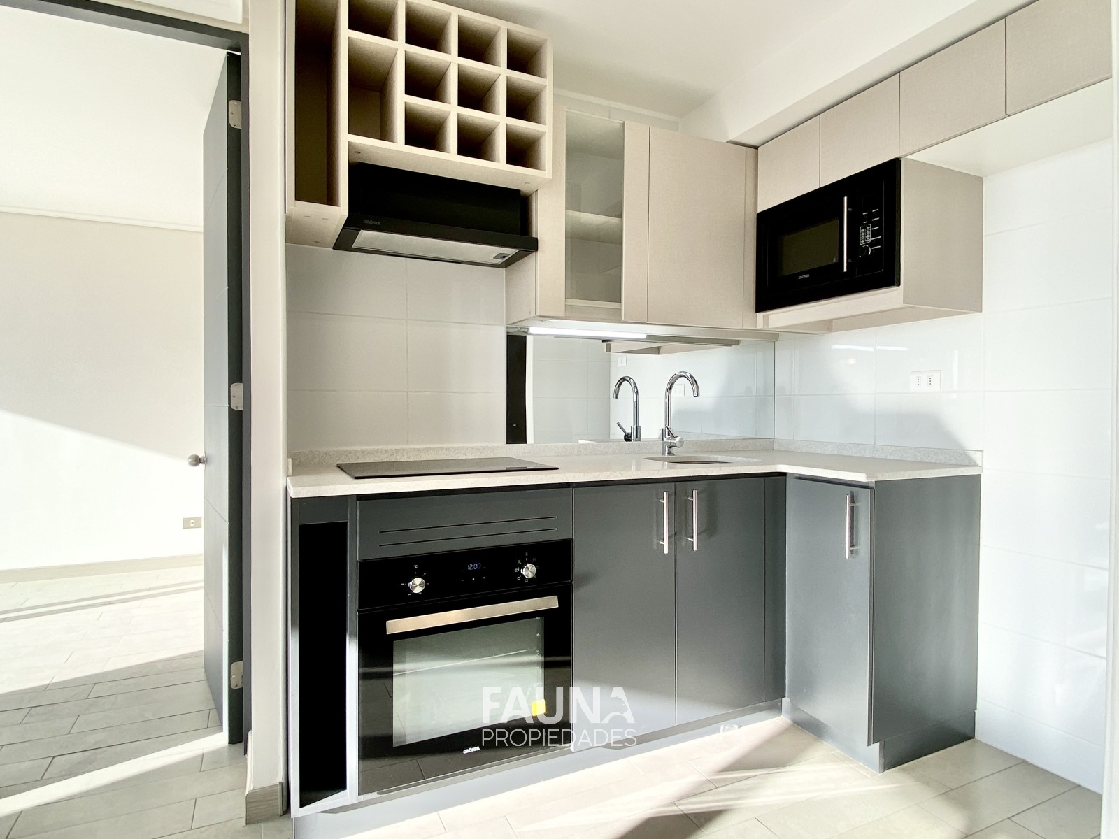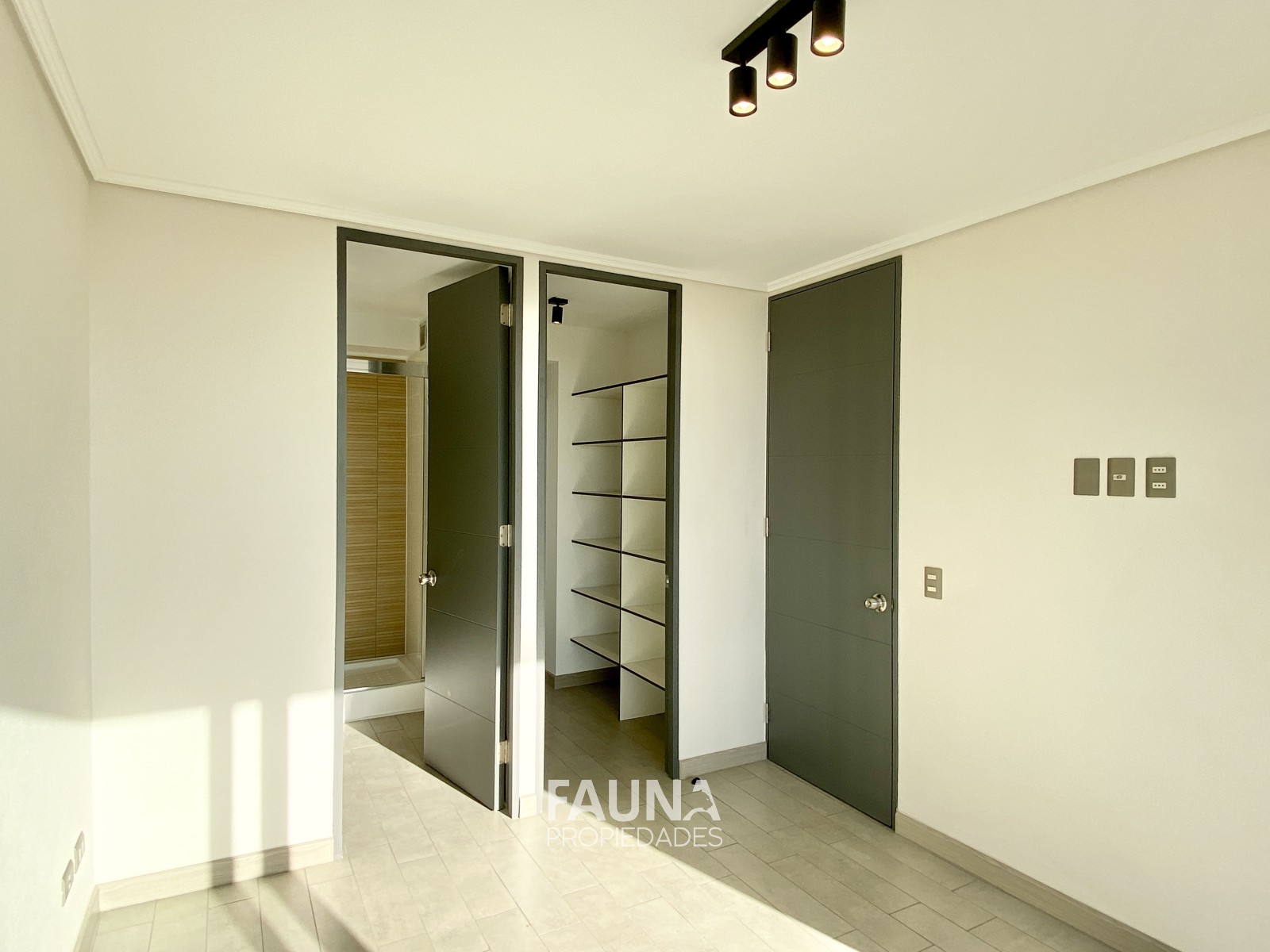 En arriendo departamento con excelente vista estilo mariposa de 2 dormitorios y 2 baños, el principal con walking closet, estacionamiento y bodega en calle Exequiel Fernández con Coipué, Macul. Todo el departamento tiene termopaneles en ventanas y el piso es de porcelanato. La cocina abierta posee cubierta de Cuarzo y es full eléctrica, con encimera vitrocerámica y posee conexión para lavadora. El agua caliente es proporcionada por el edificio. Se entrega con luces y barras para cortinas instaladas.