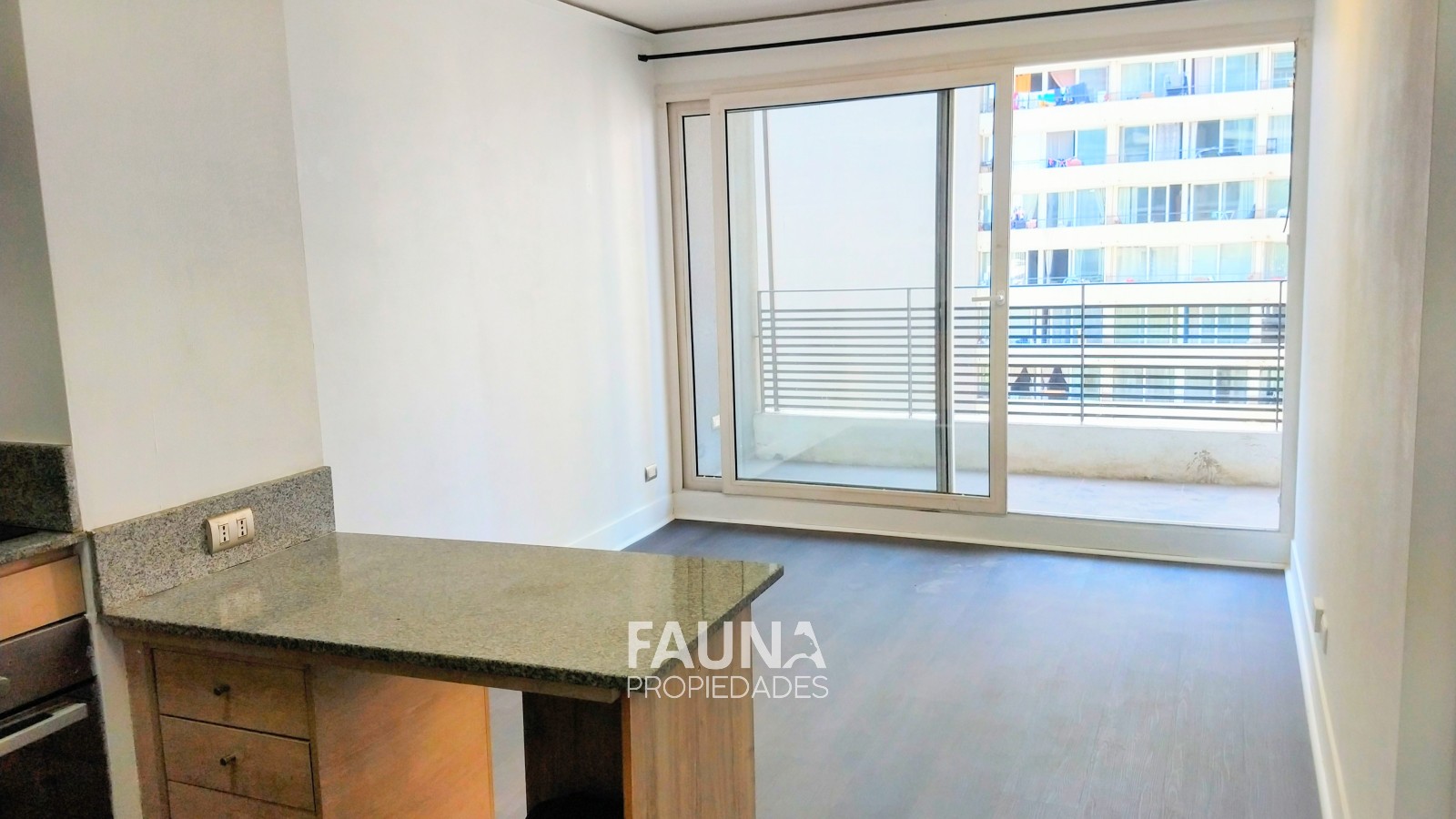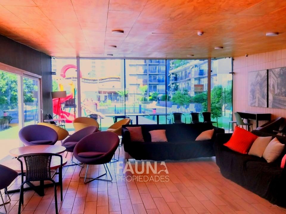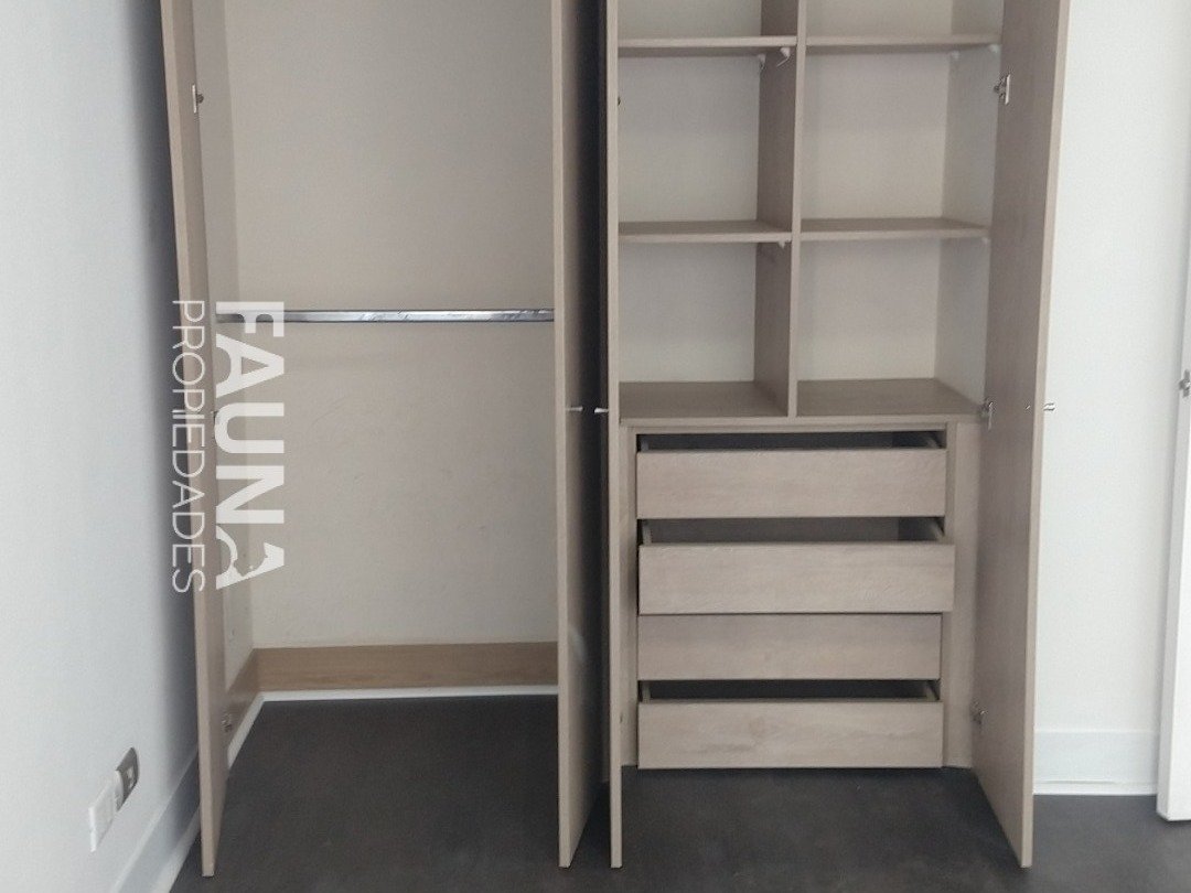 El departamento cuenta con balcón con acceso por el living y dormitorio; la cocina abierta posee superficies de granito, es full eléctrica, incluye encimera vitrocerámica, horno, campana y conexión para lavadora en el baño. El agua caliente es proporcionada por el edificio.