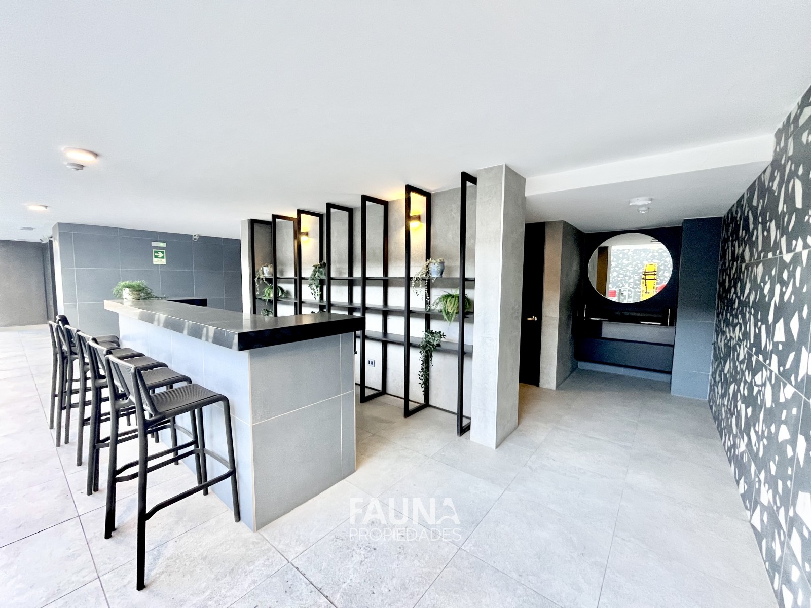 El moderno edificio cuenta con gimnasio, sala gourmet, piscina, bicicletero y quincho.