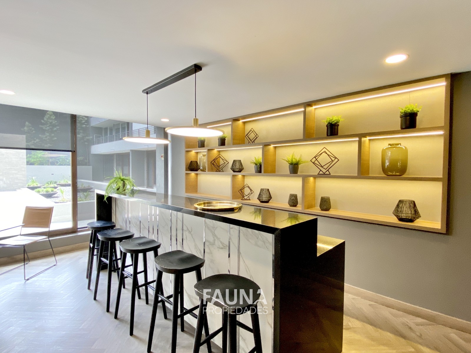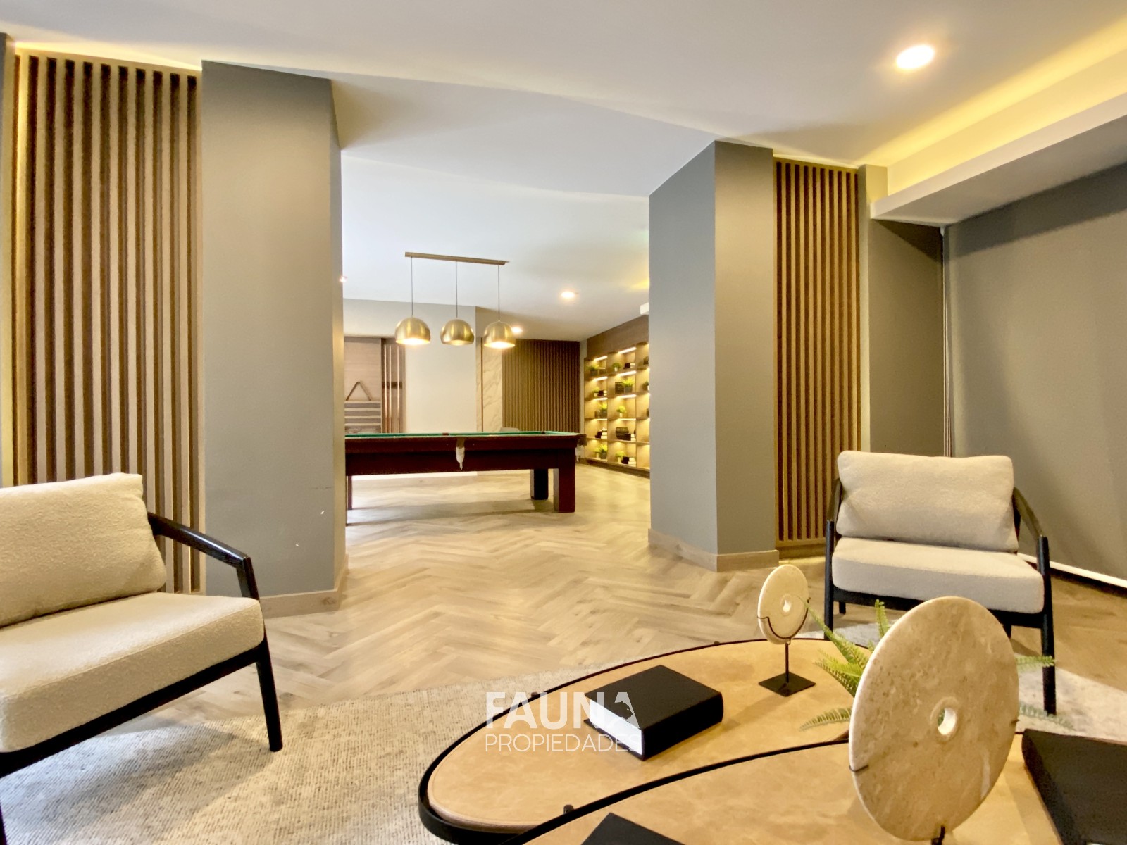 El moderno edificio cuenta con áreas comunes como piscina, quinchos, salón de juegos, sala de cine, salón gourmet, pet wash, lavandería, mesa de pool y co-work.