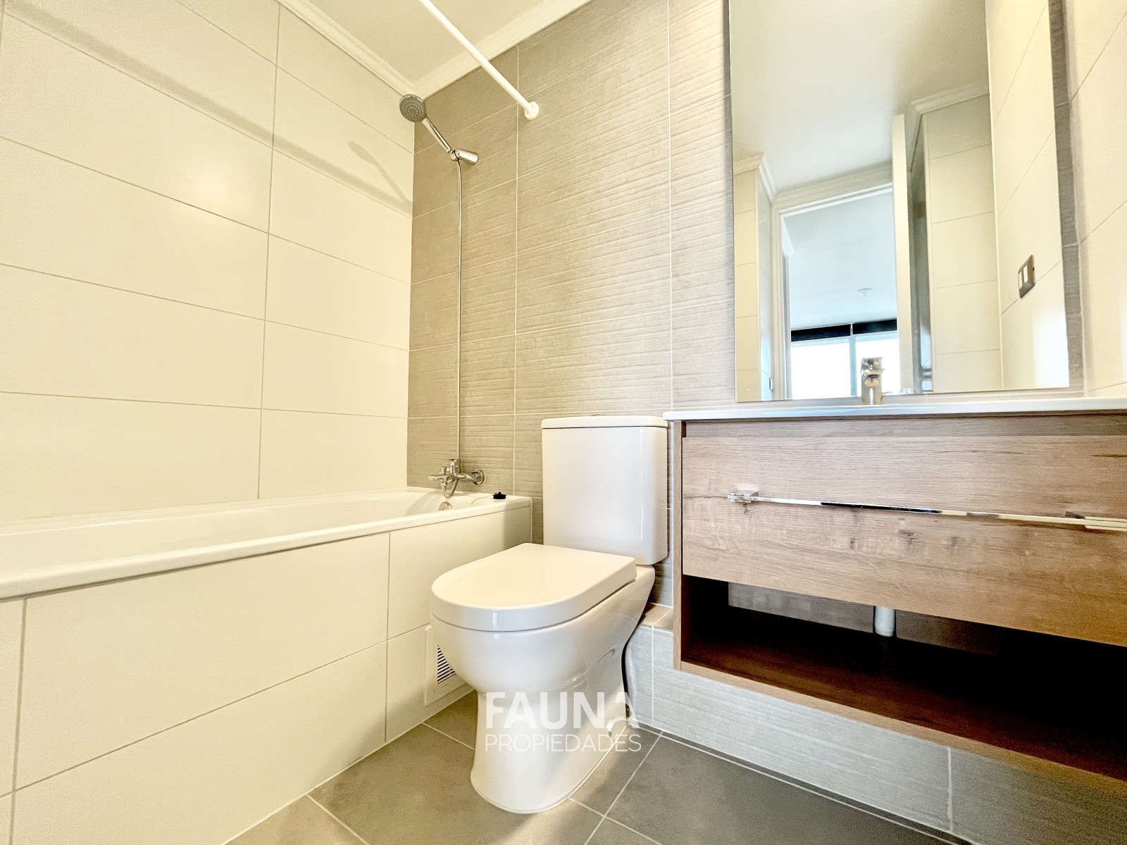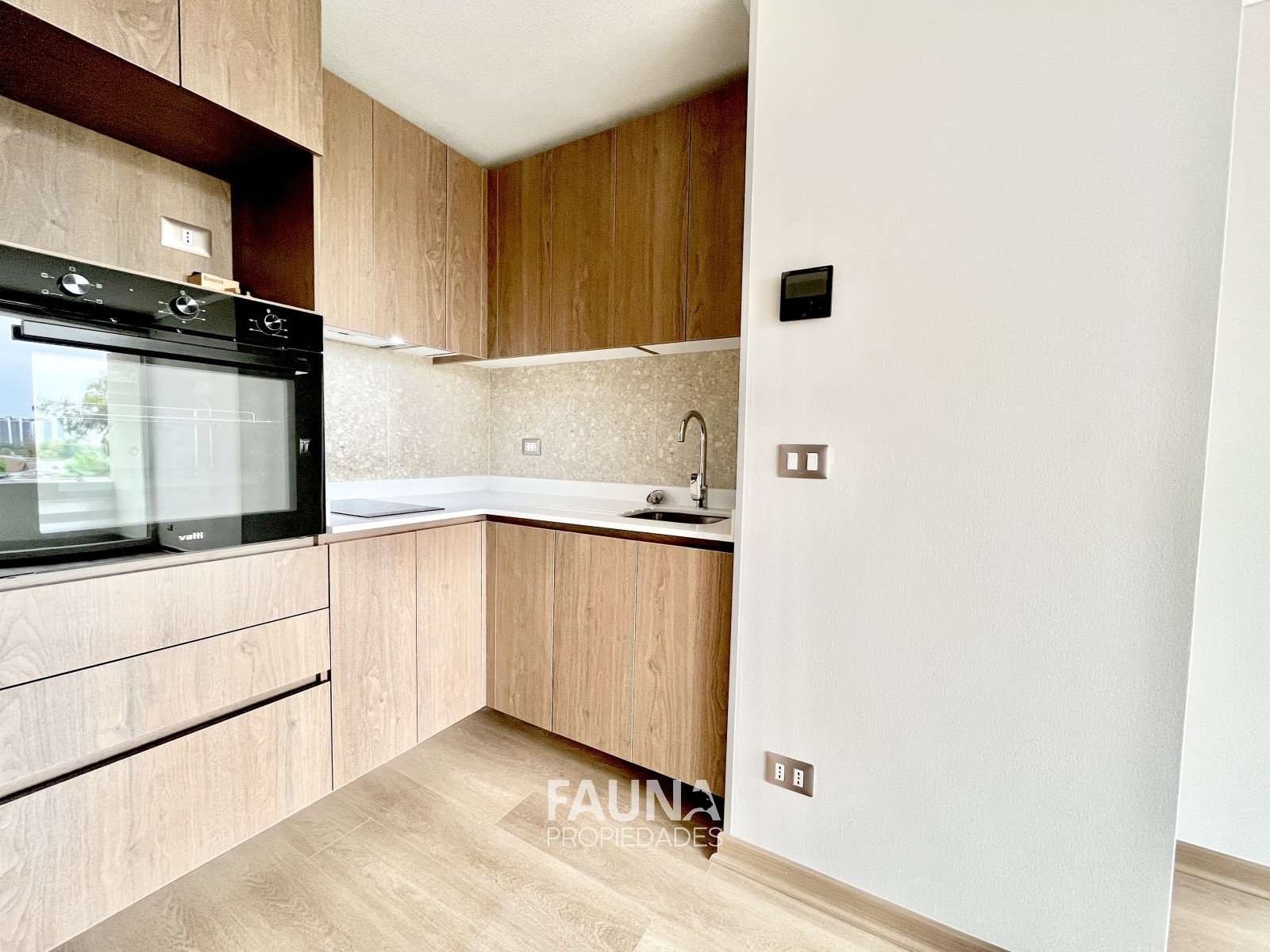 La vista despejada se contempla desde su balcón con acceso por el living, la cocina abierta posee superficies de granito, es full eléctrico que incluye encimera vitrocerámica, horno, campana, conexión para lavadora.