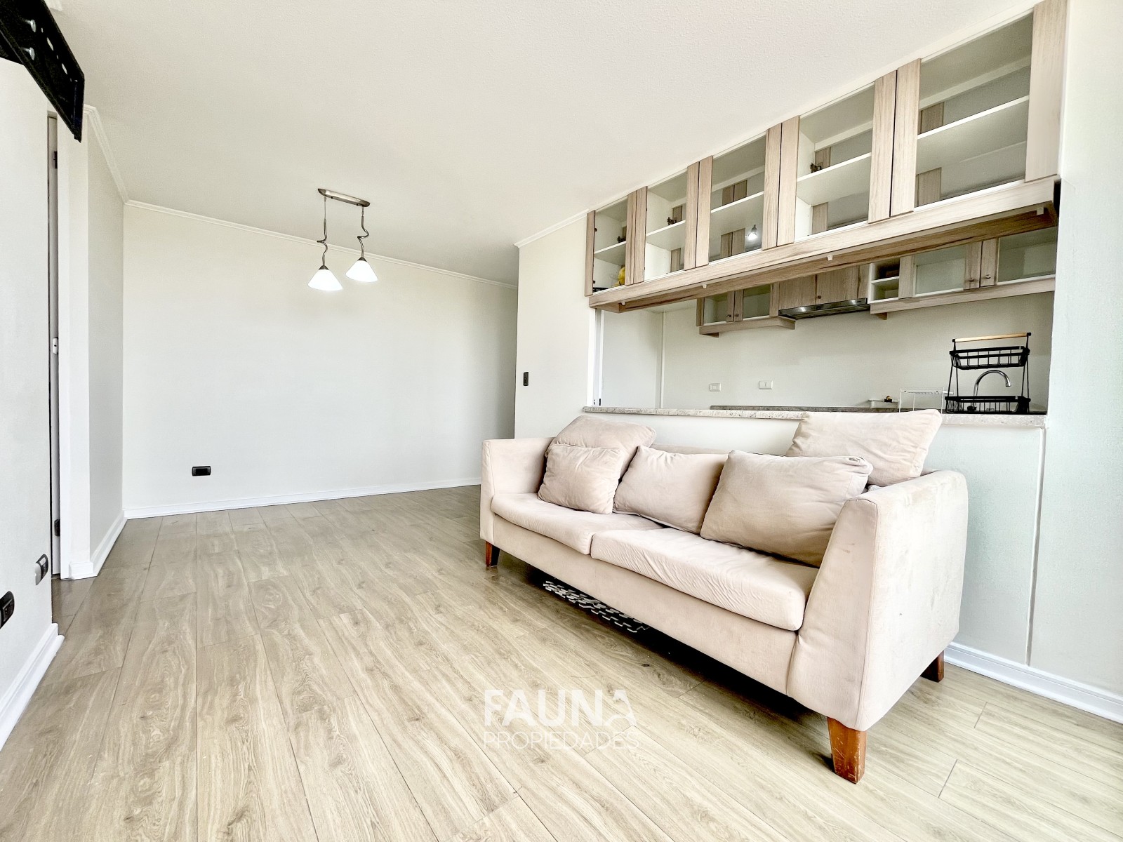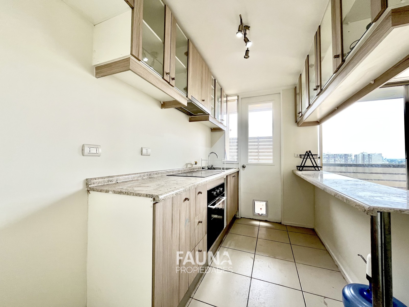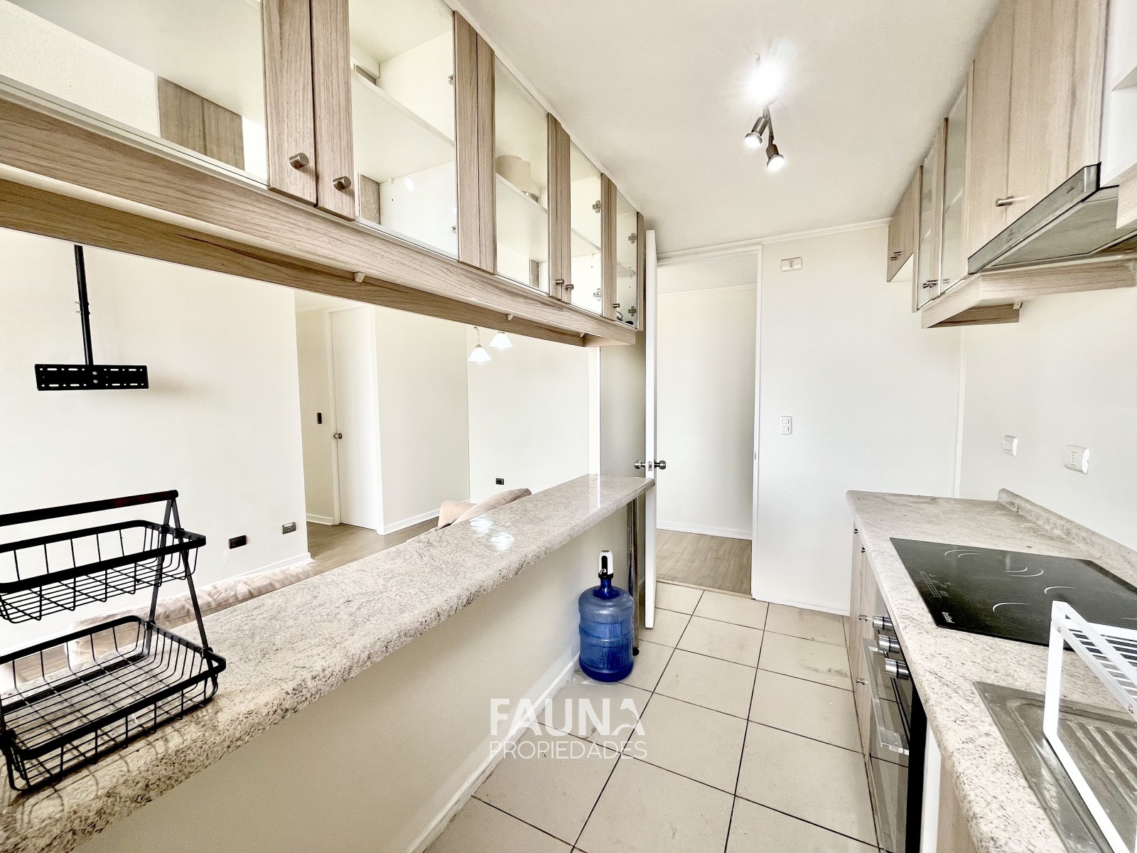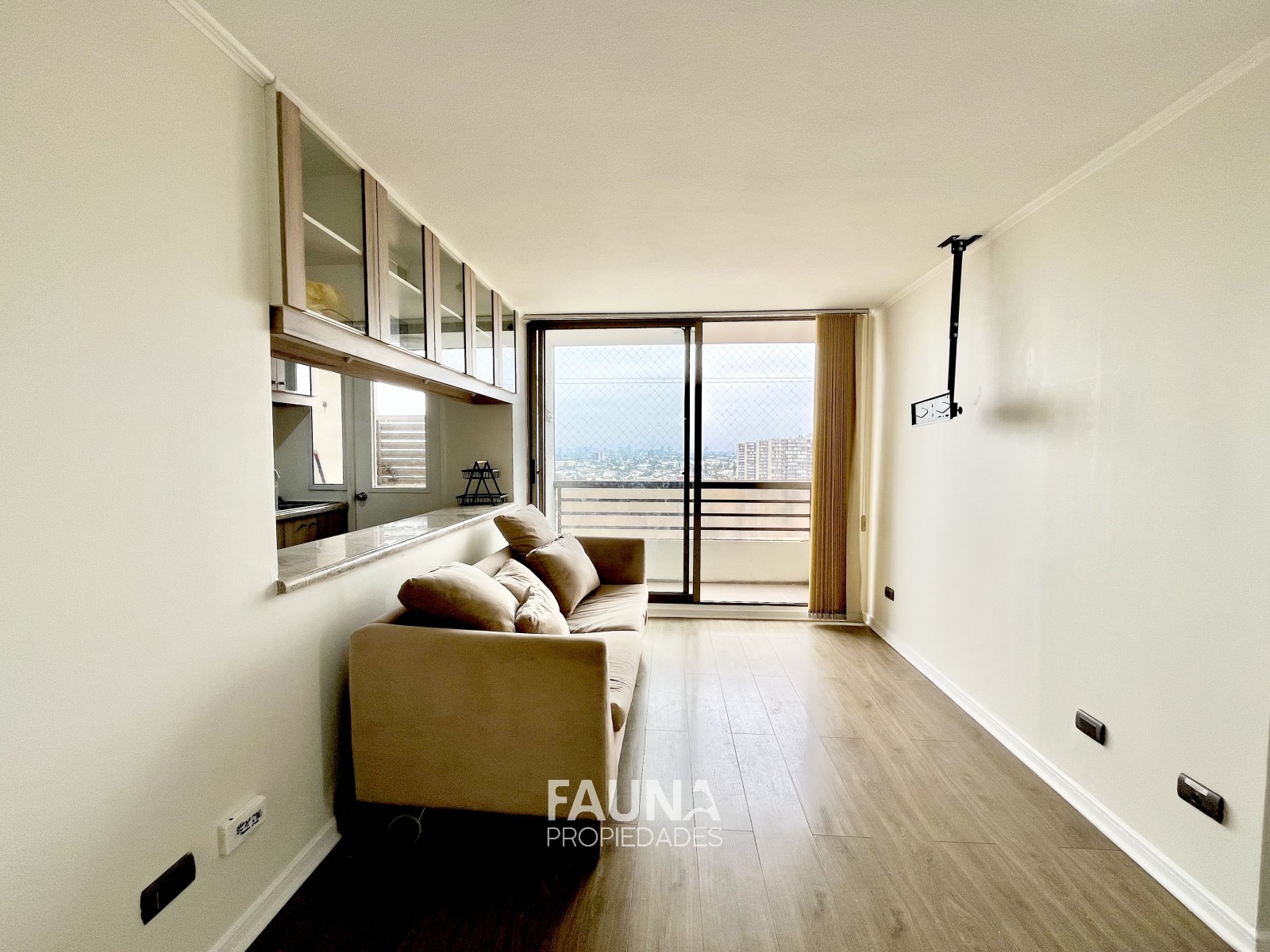 La vista despejada se contempla desde su balcón con acceso por el living, la cocina abierta posee superficies postformados, es full eléctrico que incluye encimera vitrocerámica, horno, campana, conexión para lavadora y calefont.