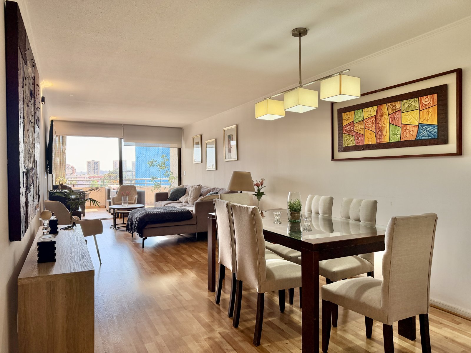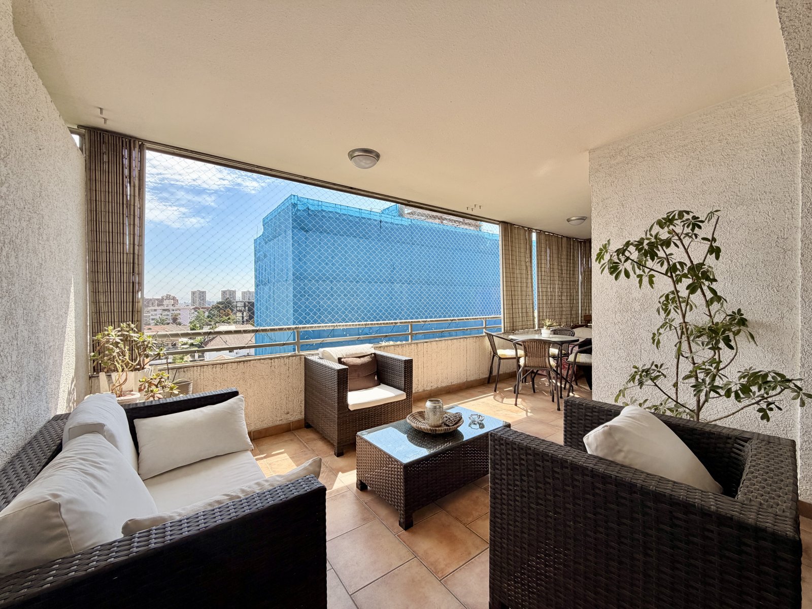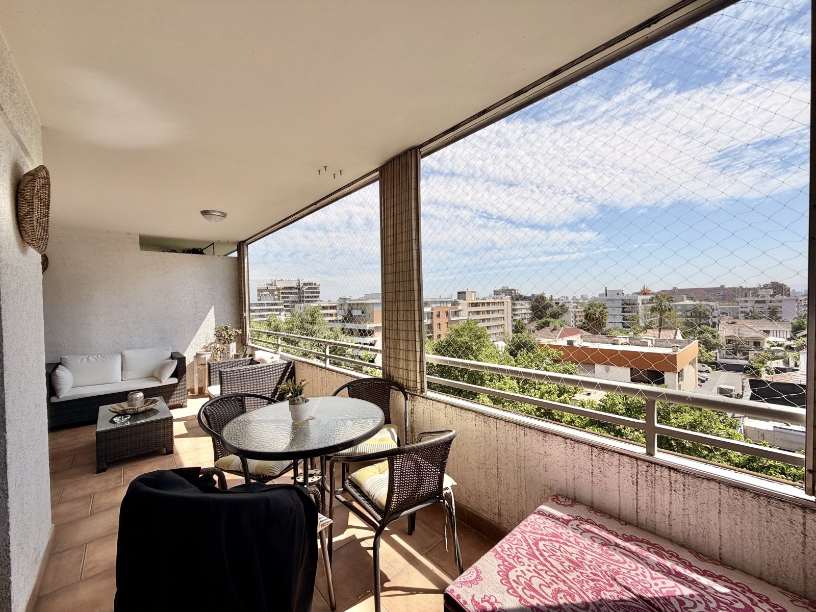 Son 104m² interiores más 21 m² de terraza, es bastante cómoda, para un juego de terraza más un comedor de terraza y una parrilla, con una excelente vista panorámica y muy verde.