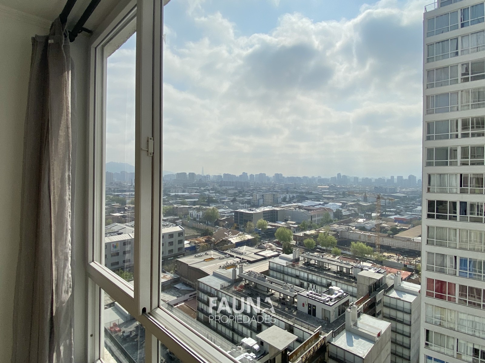 En arriendo luminoso departamento en calle General Gana esquina San Diego comuna de santiago, de 2 dormitorios y 1 baño con piso de porcelanato en living y flotante en habitaciones . La cocina es abierta con mesón de madera y se instaló una parte granito, con encimera, campana y horno eléctricos. El agua caliente es con termo, su mantenimiento recién se realizó y además cuenta con conexión para lavadora.
