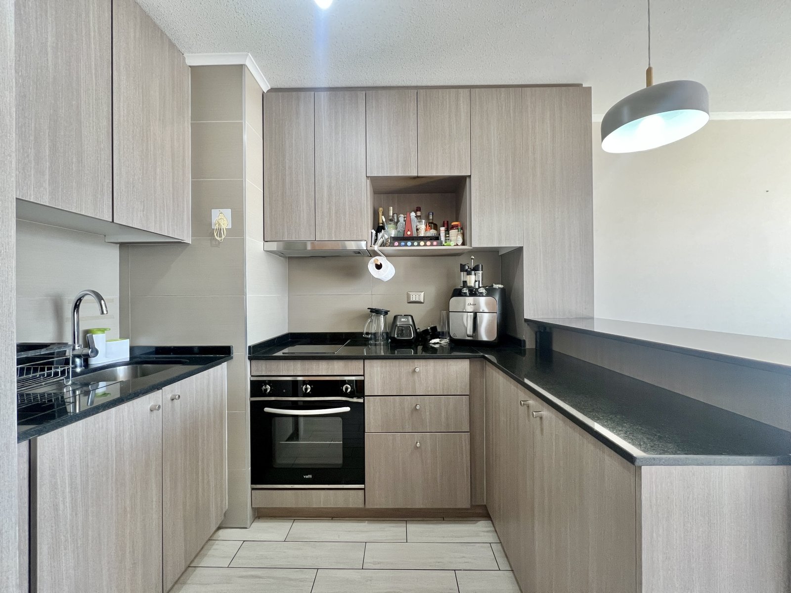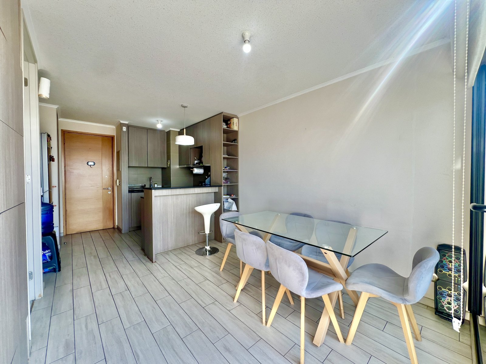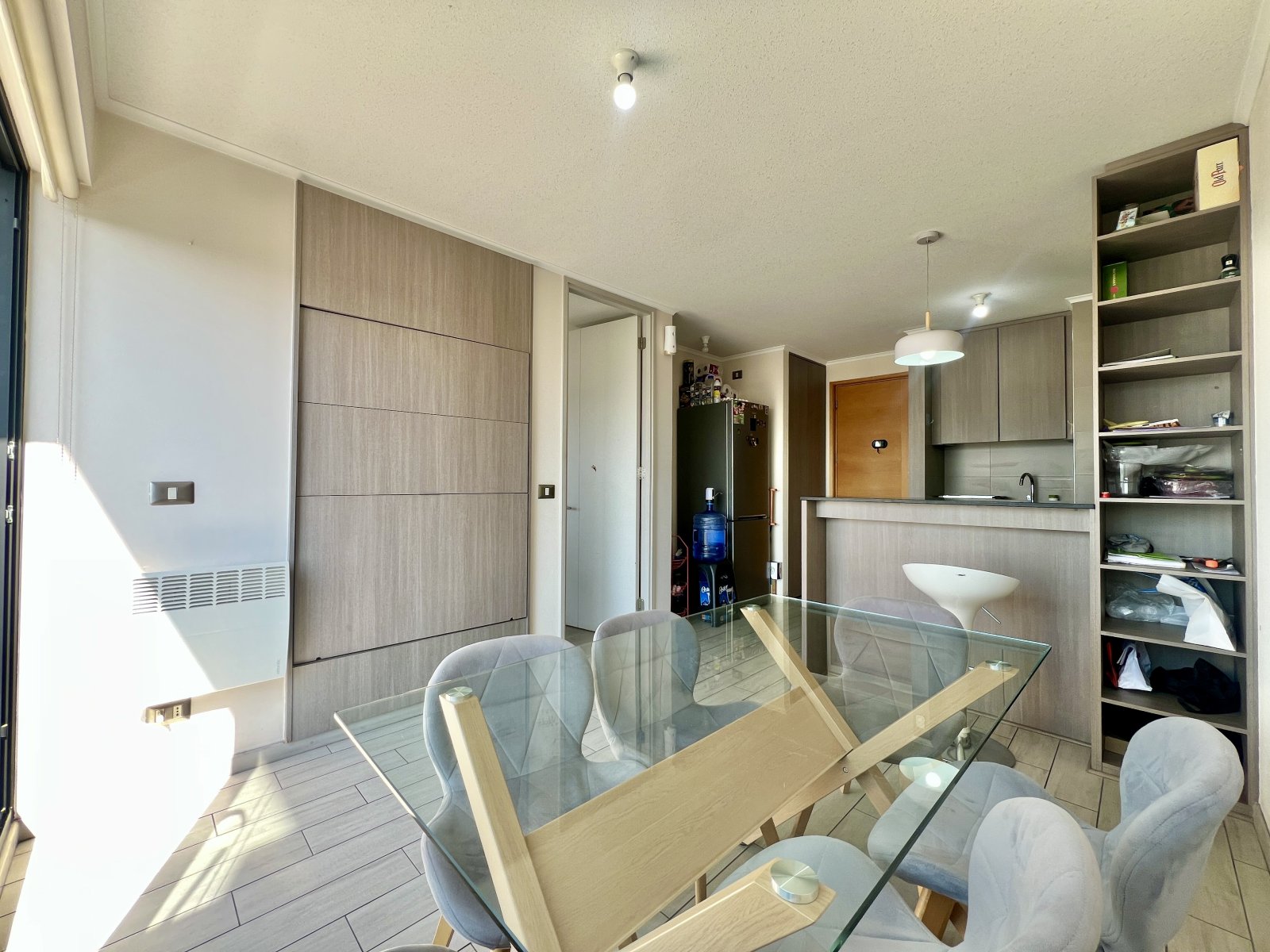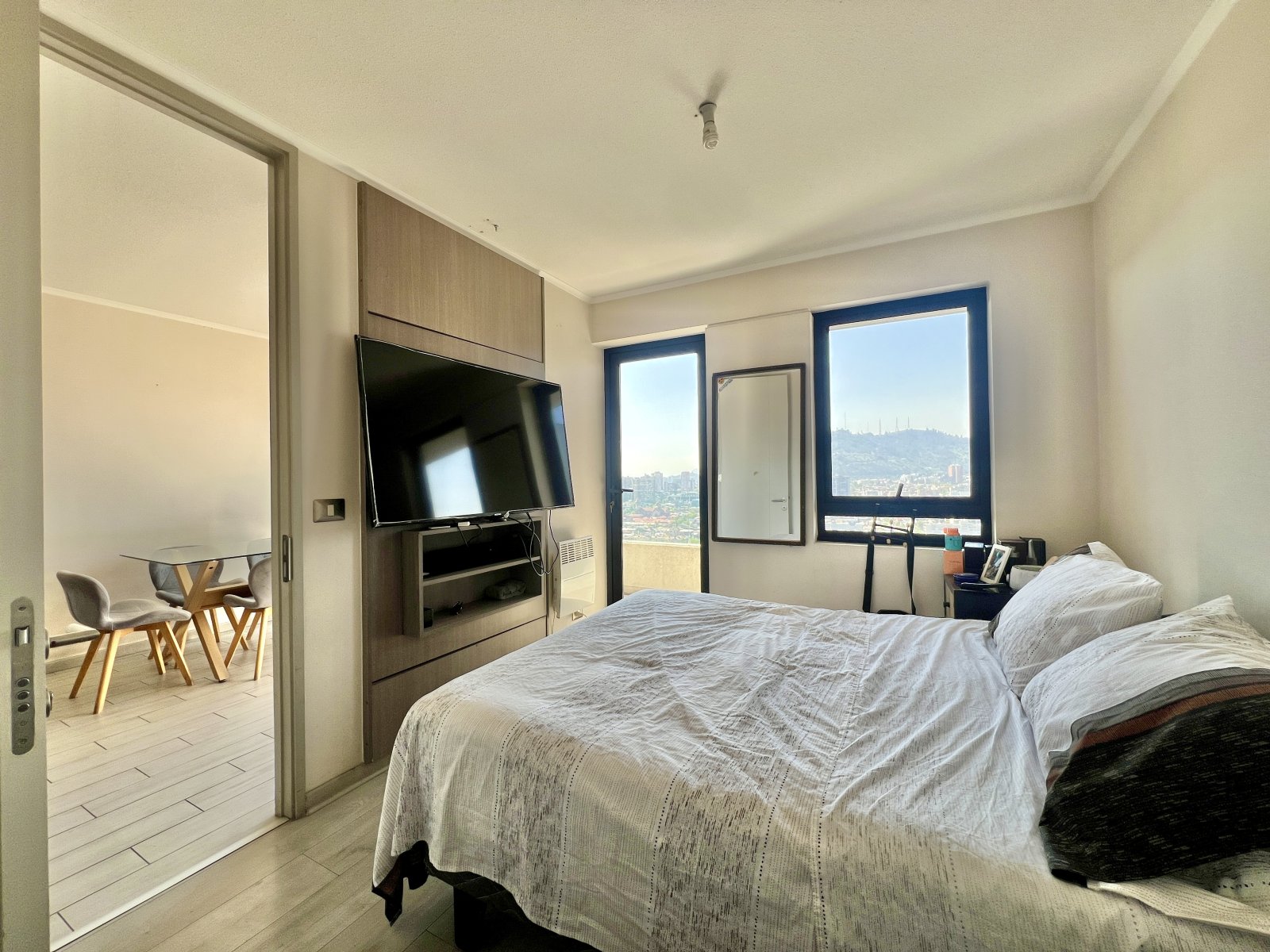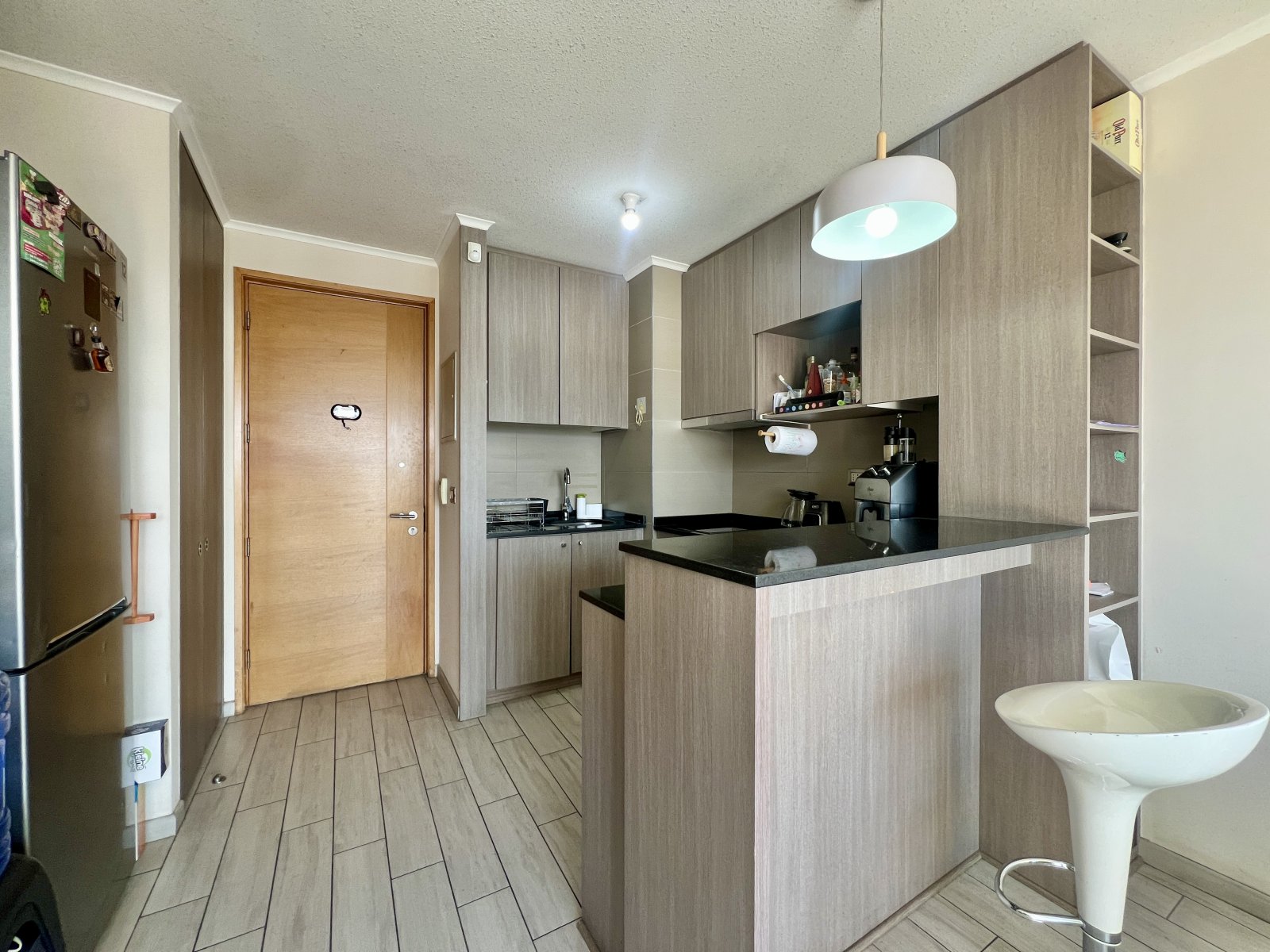 El espacio está pensado para quienes buscan confort y funcionalidad: cuenta con 1 dormitorio en suite, terraza con acceso desde el living y el dormitorio, cocina americana equipada (encimera vitrocerámica, horno eléctrico, campana), conexión a lavadora y detalles de alto estándar como panel giratorio con conexión de TV, ventanas termopanel, alarma y estacionamiento subterráneo.