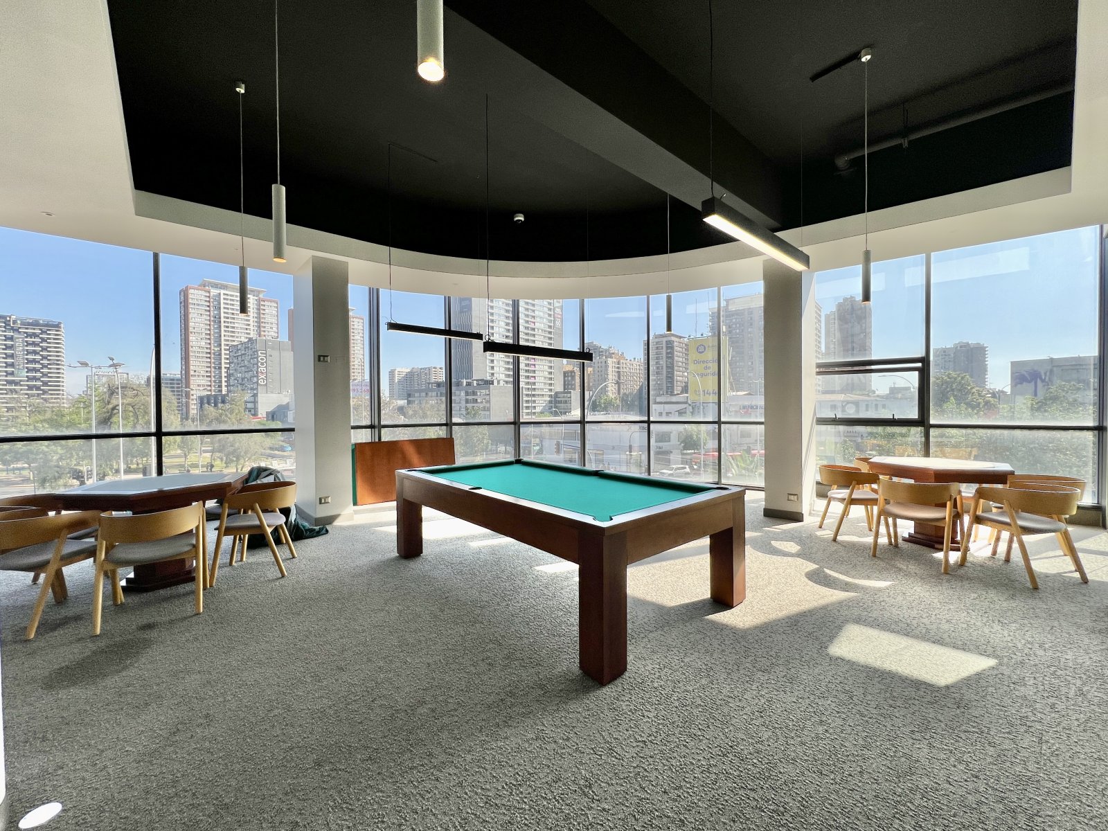 El edificio entrega una experiencia de alto nivel con áreas comunes tipo hotel: cowork, gimnasio, piscina con vista panorámica, quinchos, cine, salón de yoga, salón de eventos, sala de reuniones, sala de estudio, sala de juegos con mesa de pool y de póker, cafetería, estacionamientos de visitas y 5 ascensores. Todo con seguridad 24/7, acceso con tarjeta electrónica y gastos comunes aprox. $120.000.
